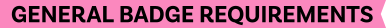 - To be eligible for a badge, complete the requirements in the badge descriptions above.
